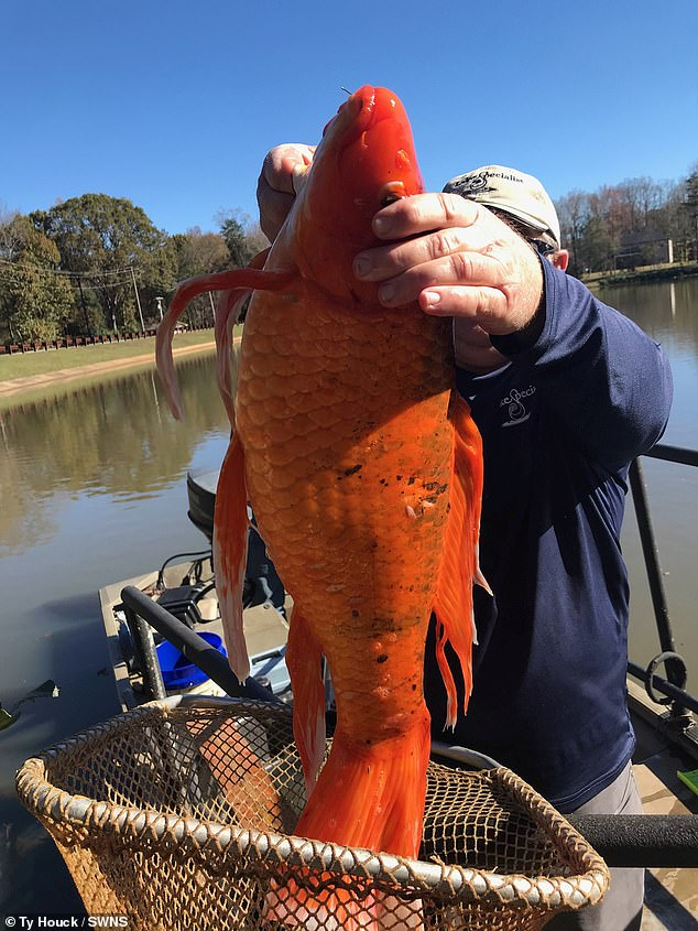 Fisherman lands monster 9lb goldfish that measures 15-inches long Every lake needs its own Loch Ness Monster.” The enormous fish was discovered in 65-acre Oak Grove Lake in Greenville County,. 2. The enormous ... |